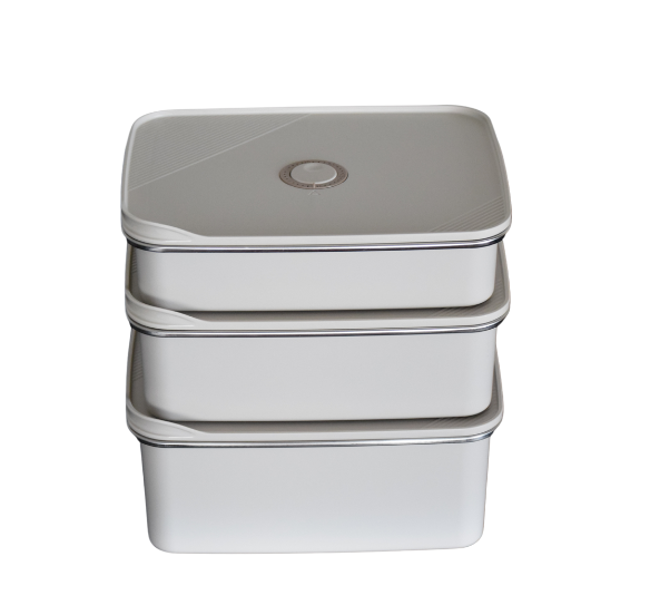 Deze set is ontworpen voor gebruik in de koelkast en vriezer. De deksels, uitgerust met een vacuümventiel en siliconen afdichting, zorgen voor een lucht- en vloeistofdichte afsluiting. Dit maakt ze ideaal voor het bewaren van soepen, stoofschotels en andere vloeibare gerechten. Net als de Daily Essential Meal Prep set zijn de bakjes van deze set niet geschikt voor de oven, magnetron of vaatwasser om de levensduur van het product te garanderen.